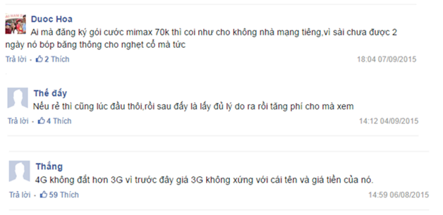 Đối với nhóm người đã sử dụng nhưng không hài lòng về dịch vụ 4G mà các nhà mạng cung cấp, họ nói rằng mọi quảng cáo đều thổi phồng sự thật, tốc độ chưa thực sự ấn tượng, chưa đạt như con số đã nêu ra. Một số khác thì phàn nàn về mức giá cước không hè rẻ như họ nghĩ. Số tiền bỏ ra mỗi tháng cũng khiến cho tài khoản nhanh cạn kiệt. Chưa kể, việc sử dụng 4G này còn khiến cho điện thoại mau hết pin – một điểm trừ khá lớn.